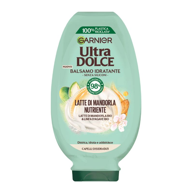 В новата си рецепта за хидратация Ultra Dolce комбинира две естествени ОРГАНИЧНИ съставки: бадемово мляко и сок от агаве. Внимателно формулирана за дехидратирана коса, формулата на Подхранващото бадемово мляко придава сладост, блясък и жизненост на косата, която блести от здраве, без да я утежнява.