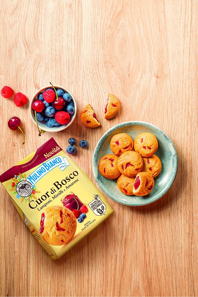 Сред многото варианти за закуска или леки закуски винаги сме намирали хиляди вида бисквити на италианските маси; плодовите не са изключение – като Cuor di Mela на Mulino Bianco. Cuor di Bosco с малини, боровинки и черни череши, нов продукт, който ще се запечата в сетивата Ви.