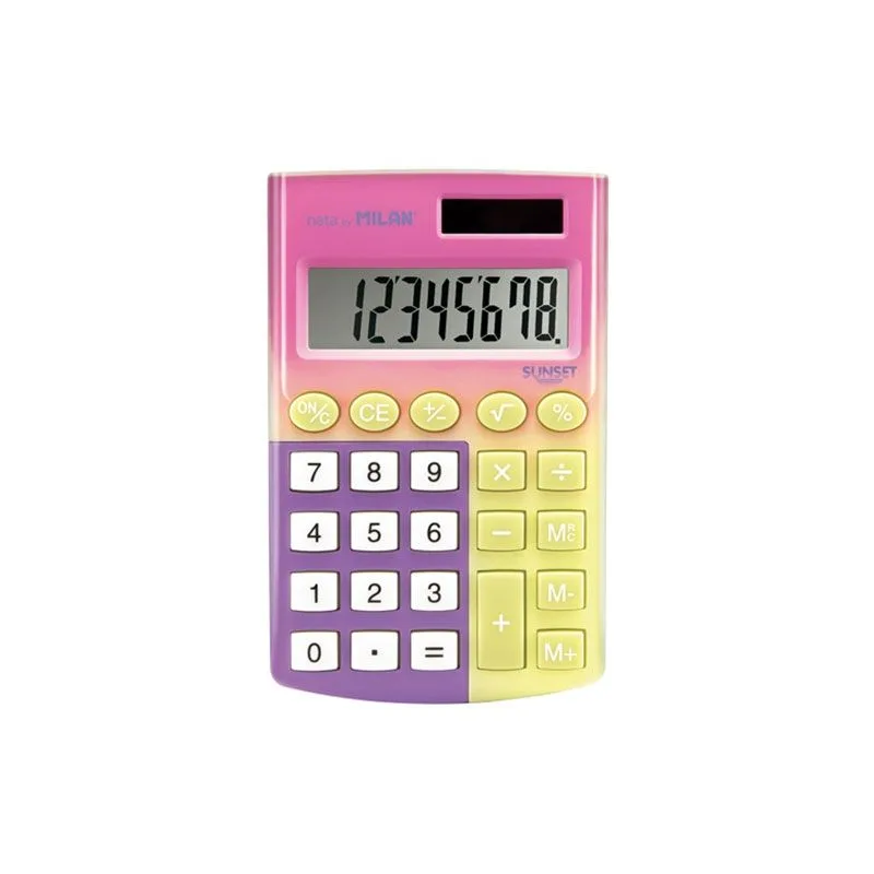 💼 Калкулатор Милан MILAN Sunset, 8 разряден е създаден, за да направи вашите изчисления лесни и удобни. Със своите компактни размери и функционалност, този калкулатор е идеален за ежедневна употреба както в офиса, така и у дома.
