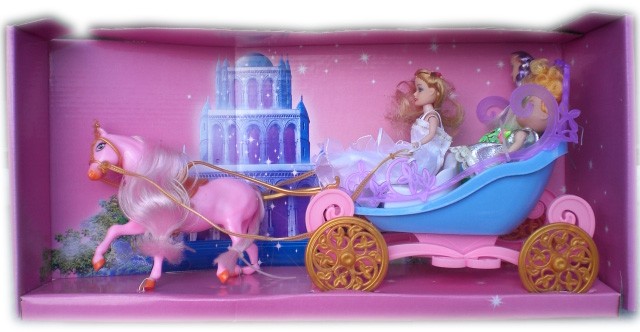 С Каляската с три кукли децата могат изцяло да се потопят в света на приказките, в света на Пепеляшка, в света на Принцеси и Принцове! С тази каляска с кон момиченцата ще могат да възпроизвеждат и надграждат много и различни сцени и истории от приказките обогатени с техните фантазии по въпроса и така да се обогатяват и да реализират част от мечтите си на темата.