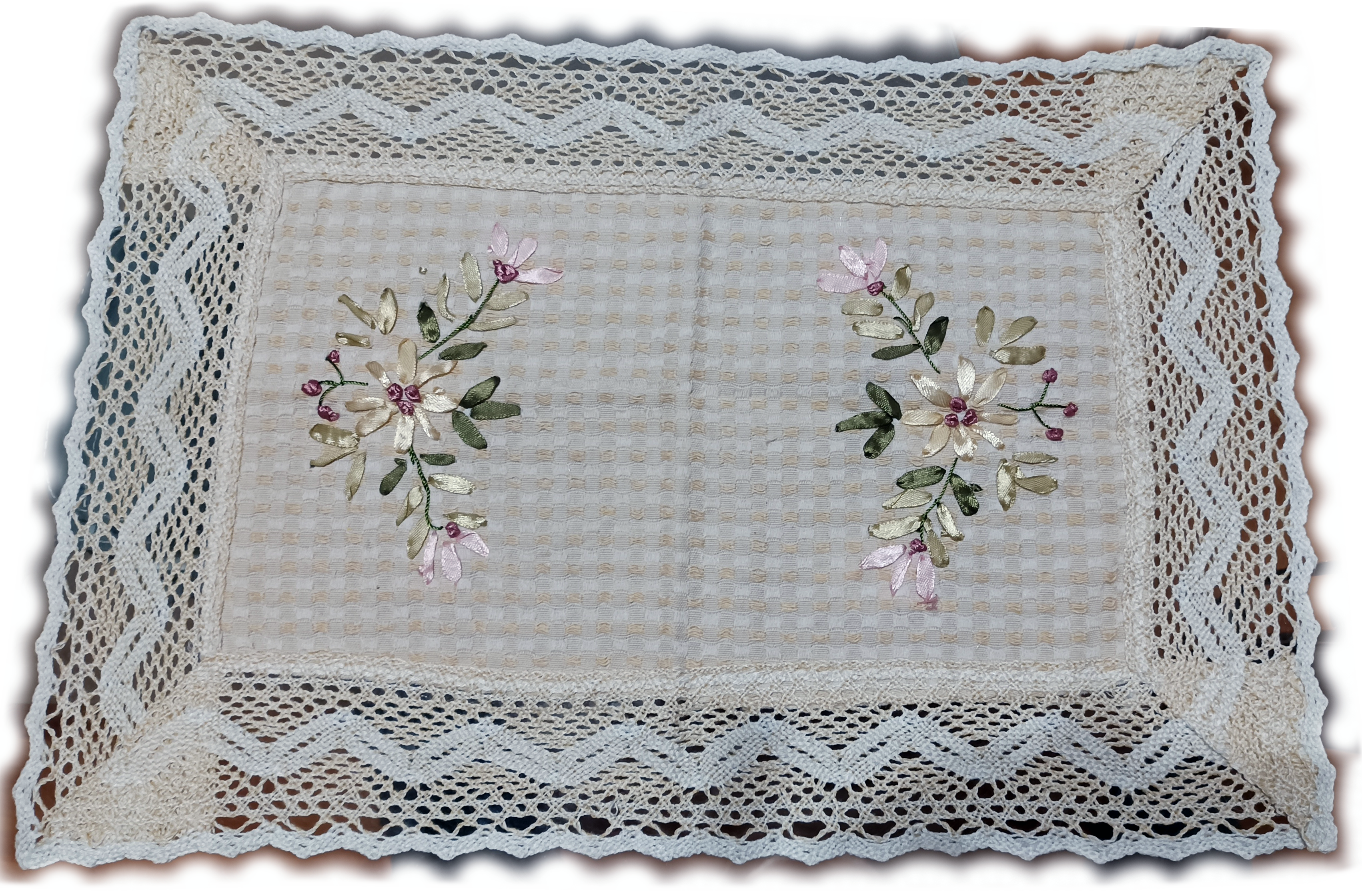 Каре с дантела и бродирани цветя