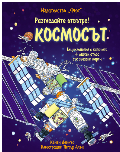 Космосът енциклопедия с капачета и атлас със звездни карти