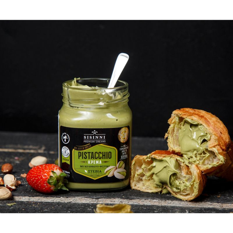 Гръцкият крем с шамфъстък на „Sisinni“ съчетава богатия, гладък вкус на фин шоколад с хрупкавите ядки от шамфъстък, предлагайки уникално гурме изживяване. Изработен с внимание към детайлите и високи стандарти за качество, този шоколад е перфектната комбинация между сладост и соленост, като подчертава автентичния вкус на гръцките ядки.