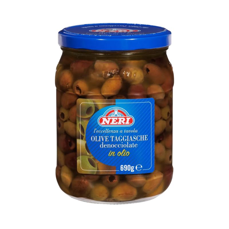 Изискани италиански маслини Taggiasche , обезкостени и потопени в ароматно зехтиново масло. Този сорт произхожда от Лигурия – регион, известен със своите меки, деликатни маслини с богат вкус и фина сладост. Тези маслини са отличителни със своя нежен аромат и кадифена текстура , което ги прави перфектен избор за гурме ястия и фини мезета. Сорт: Taggiasca (Лигурия, Италия)🌿. Обезкостени маслини, консервирани в зехтин🫒. Балансиран, леко сладък, с нотки на ядки и билки 🍽️. Идеални за салати, паста, фокача, антипасти, риба или сирена. Съхранение: В хладно и тъмно място; след отваряне – в хладилник🧴.