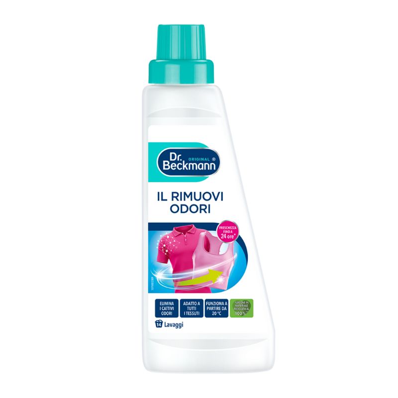 Ефективното решение за борба с упоритите миризми на пранe. Формулата с комплекс против миризми Dr. Beckmann Odor Remover активно премахва упорити миризми като пот, никотин и застоял въздух, действайки дълбоко във влакната. В същото време, микрокапсулите за свежест проникват във влакната и се разграждат, когато дрехите се носят, предотвратявайки образуването на нови миризми. Приятно усещане за свежест се освобождава с всяко движение. Интензивна свежест. Дерматологично тестван. Подходящ за всички видове тъкани, включително деликатни и технически тъкани. Ефективен дори при студени и кратки цикли на пране. Съвместим с всякакъв вид перилен препарат