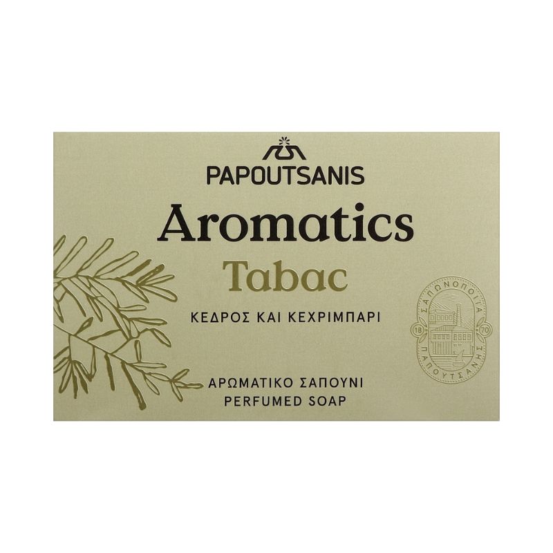 Твърд сапун Papoutsanis AROMATICS Тютюн 125 г. Ароматът на кедър и амбра придава мъжественост на вашата свежест.