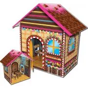 Тя е със стени от бисквитки, поръсени с бонбонки, покривче от шоколад , розов крем и ягоди, прозорчета от цветна захар и още много лакомства, които биха задоволили не само гладните, но и най-капризните и злояди съвременни деца. Двете кукли Хензел и Гретел ще влизат в нея през отваряща се врата. Вещицата ще ги гощава с вкусни палачинки и ще ги слага да спят в две хубави легла с бели завивки, за да се почувстват „като в облаците“. А на сутринта ще заключва Хензел в малката кошара, за да го угоява и т. н., и т.н. до щастливия край.
