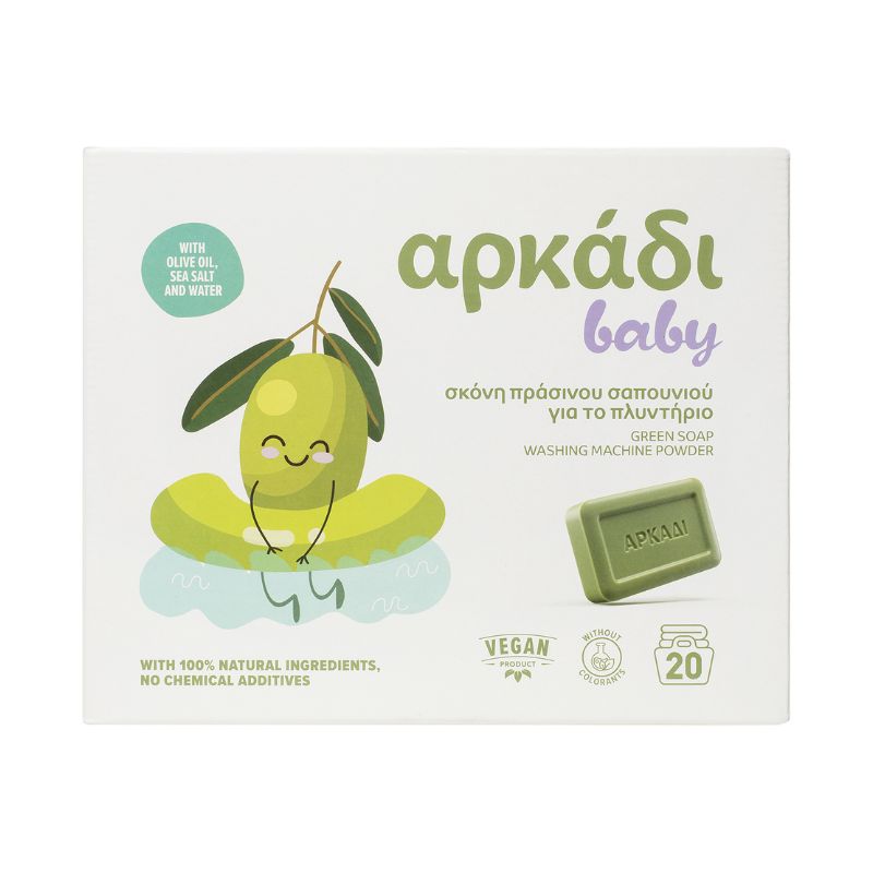 Сух прах Arkadi Baby бебешки прах за пералня от зелен сапун със зехтин и морска сол 20пр 1кг
