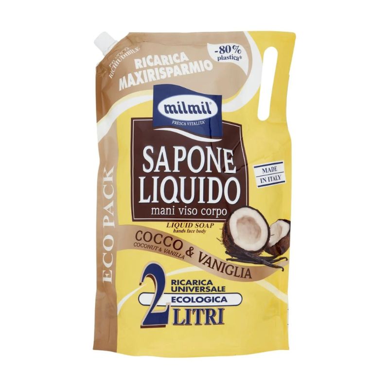 Проектиран и проучен за ежедневна хигиена и почистване, той оставя кожата мека и приятно мека. Деликатен, защото избраните му компоненти са деликатни, затова е идеален за употреба от цялото семейство. Тази опаковка съдържа 2 литра течен сапун, подходящ за презареждане на всички бутилки с дозатори и диспенсери с капак и натискане.